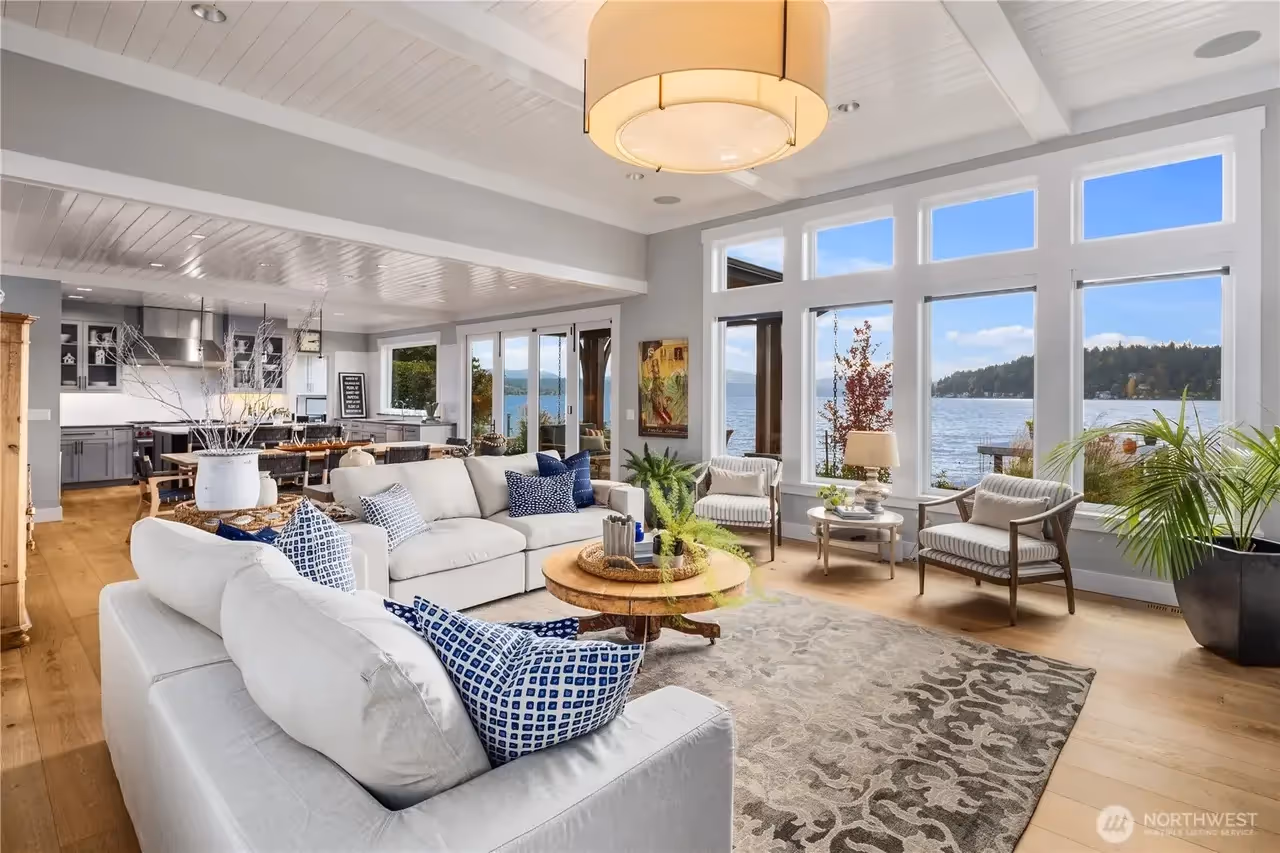 Large window walls and generous outdoor spaces connect the interior living areas directly to the water. Every element of the home was thoughtfully built to balance beauty, durability, and everyday function.