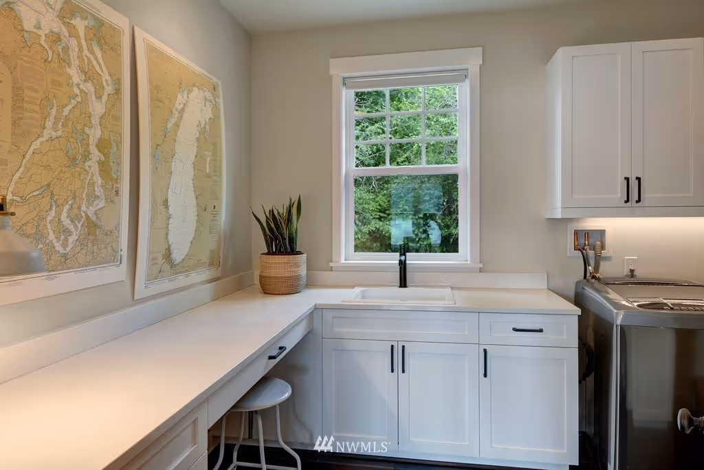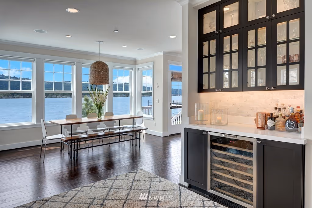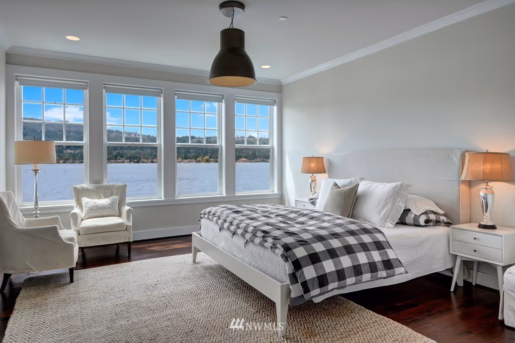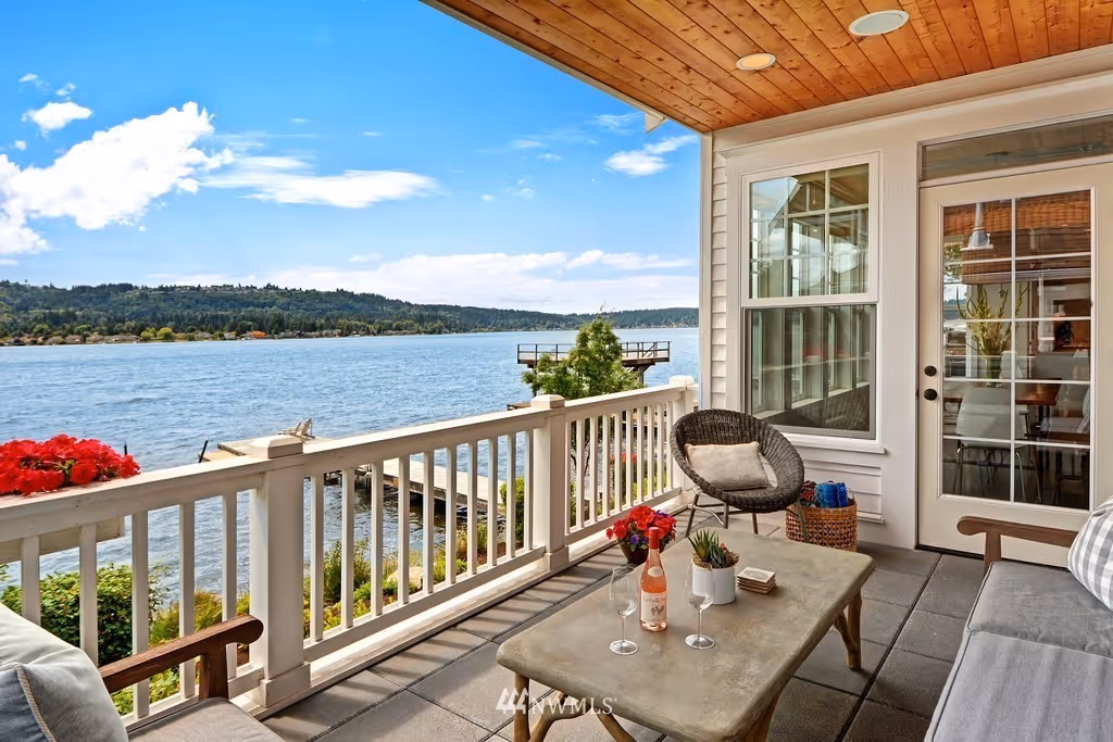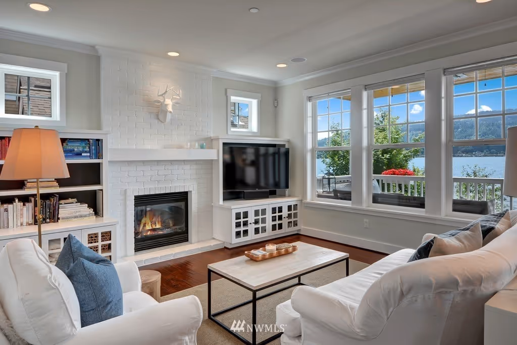 Large window groupings and covered outdoor living spaces strengthen the connection between the home and the shoreline. Every detail was carefully built to support long-term durability, comfort, and refined living.