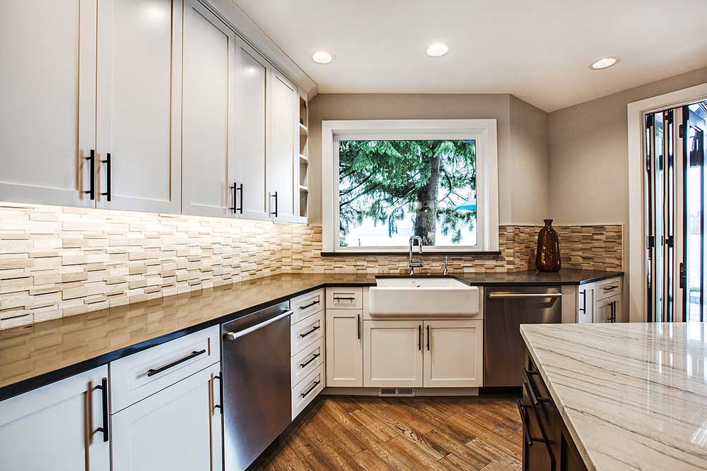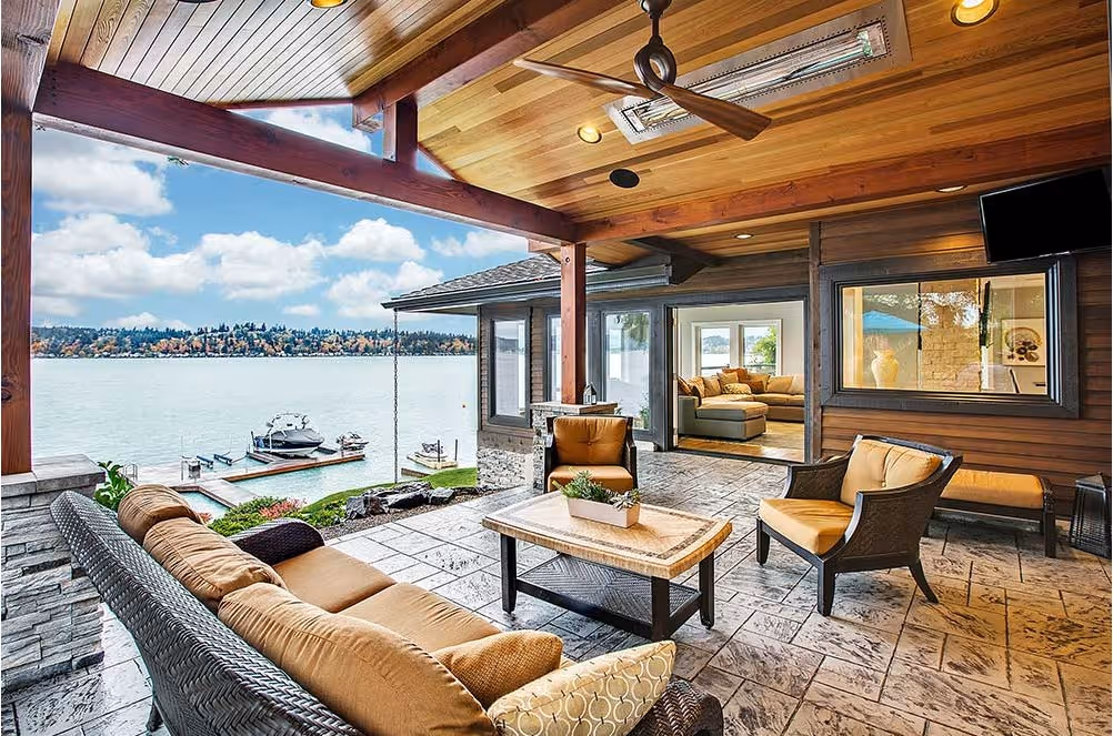 This home remodel focused on enhancing the connection between interior living spaces and the waterfront through a fully reimagined covered outdoor living area.