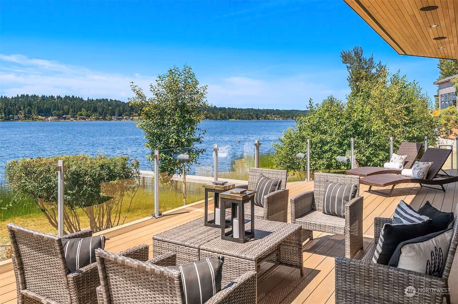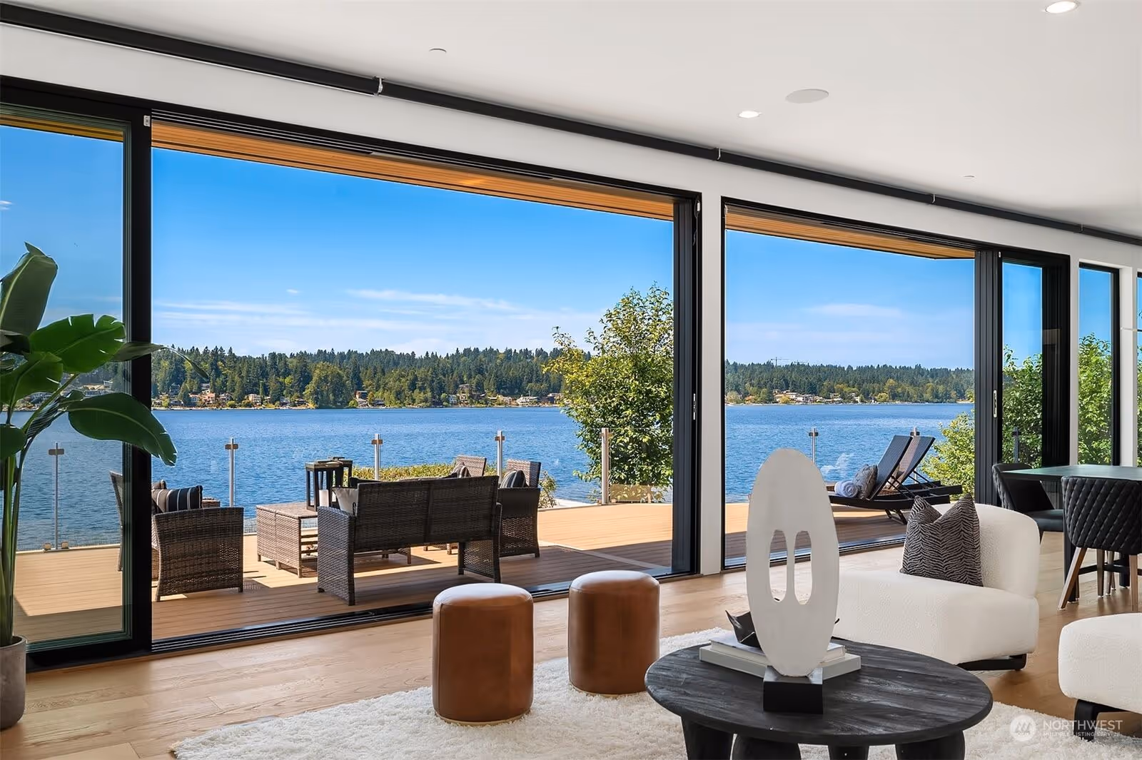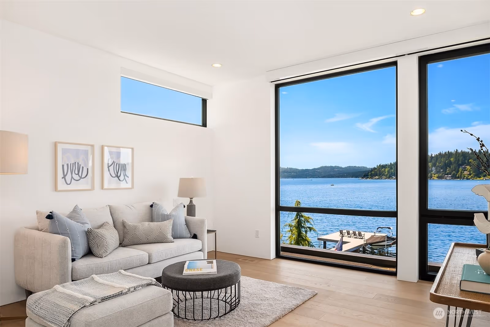 - Expansive window systems capturing panoramic waterfront views